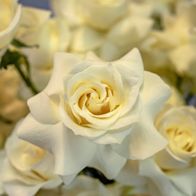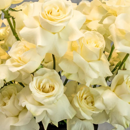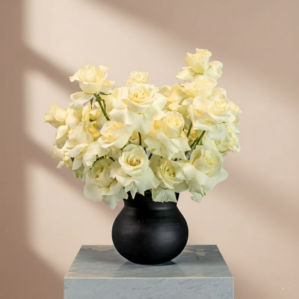 Fujairah features elegant off-white roses arranged in a sleek black jar, creating a refined and patriotic design perfect for National Day gifting.